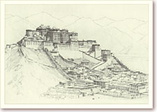 Dieses größte tibetische Bauwerk wurde im 17. Jahrhundert vom 5. Dalai Lama erbaut und diente als Winterpalast für die nachfolgenden Dalai Lamas. "Potala" ist der Sanskritname für das Reine Land von Avalokiteshvara, dem Bodhisattva des allumfassenden Mitgefühls, als dessen Verkörperungen die Dalai Lamas angesehen werden.