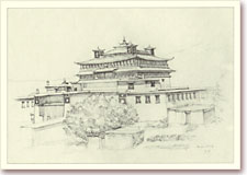 Diese für Tibet typische Bergeinsiedelei befand sich vor seiner Zerstörung durch die chinesischen Invasoren in der näheren Umgebung von Lhasa, der Hauptstadt Tibets, und war ein Ort der Kontemplation und meditativen Versenkung.